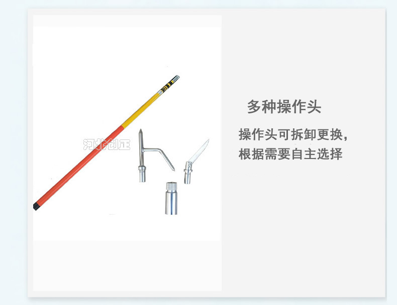 4、產(chǎn)品特點(diǎn):重量輕,易攜帶,使用方便,可根據(jù)使用空間伸縮定位長度,克服了接扣式拉閘桿因長度固定而使用不便的缺點(diǎn)。